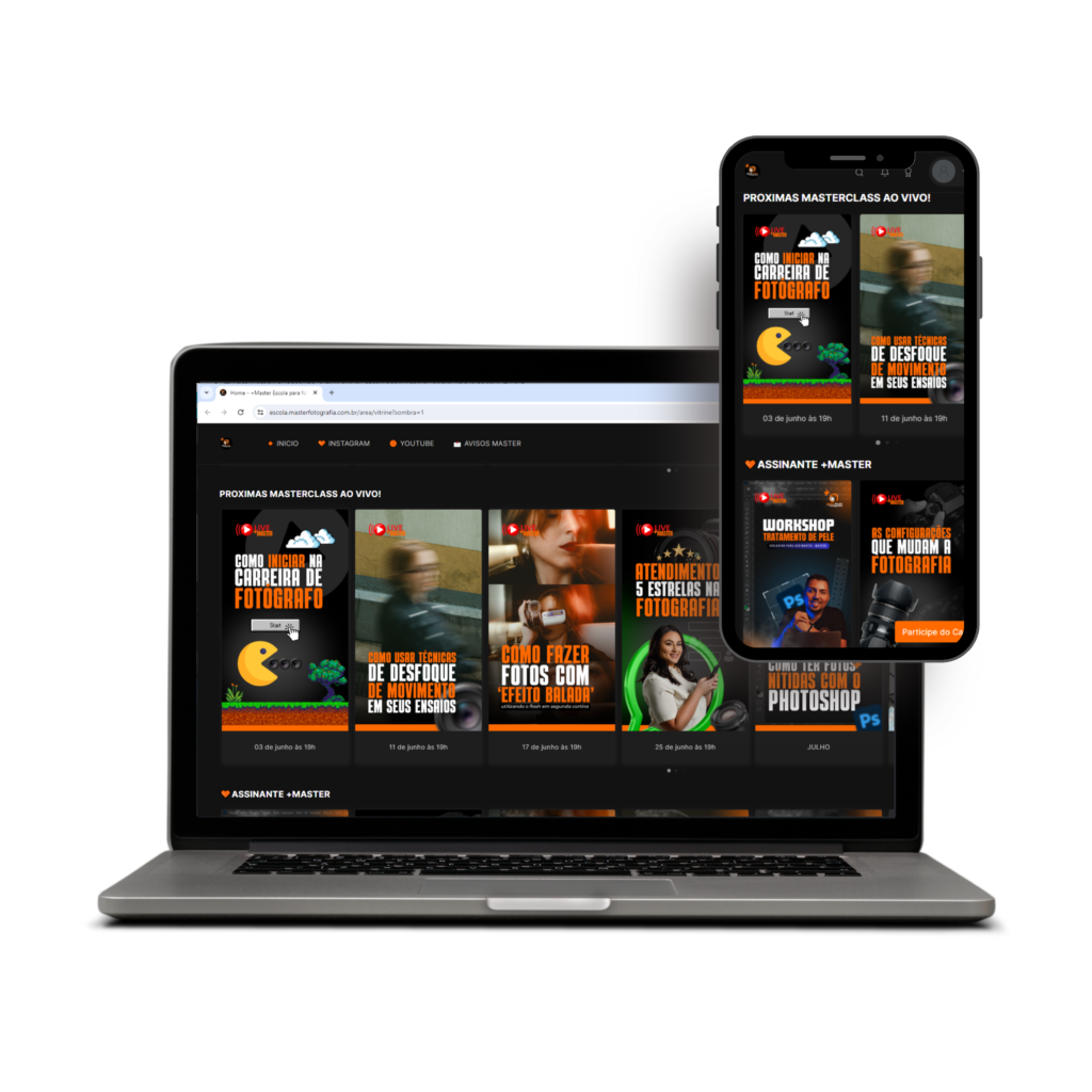 Veja abaixo as aulas que você terá acesso assim que se tornar um Fotógrafo Master, além de um encontro ao vivo por semana!